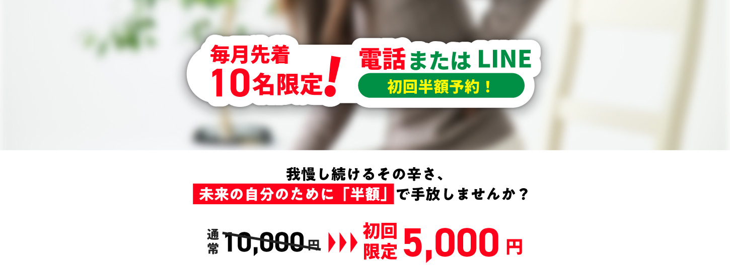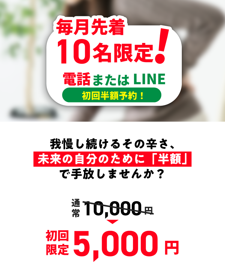 ホームページをご覧になっていただいた方限定で、初回の施術料金を限定特別価格にさせていただいております。