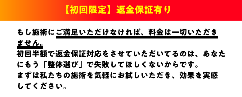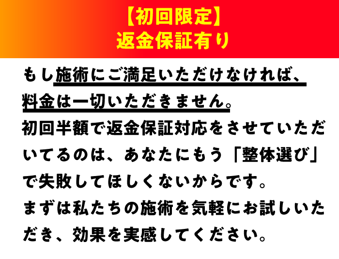 もし万が一、初回の施術で変化を実感できなければ、施術費は全額返金いたします。