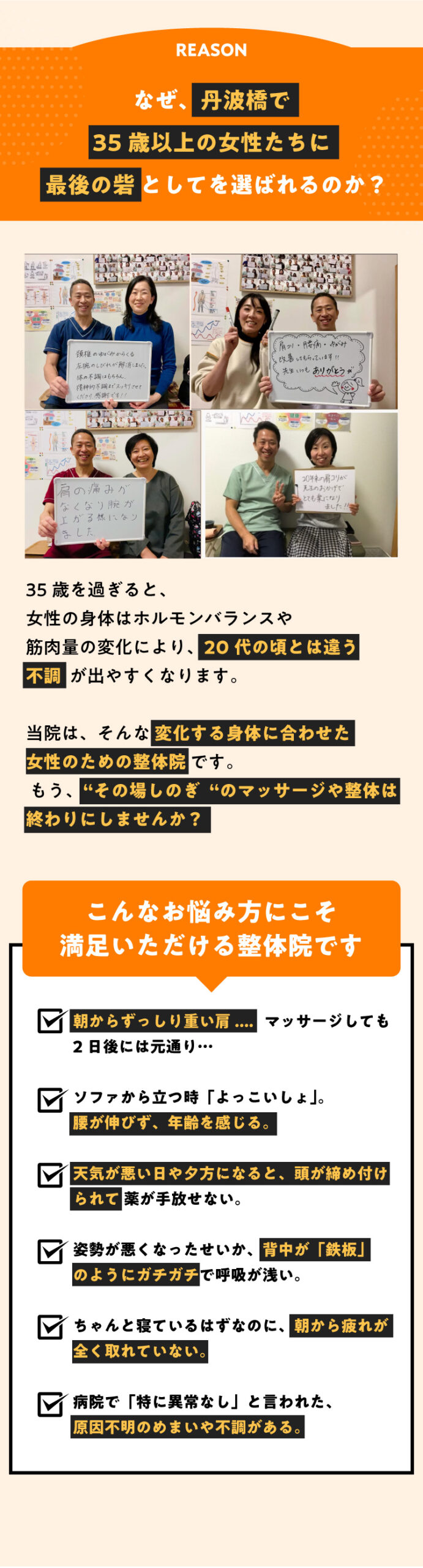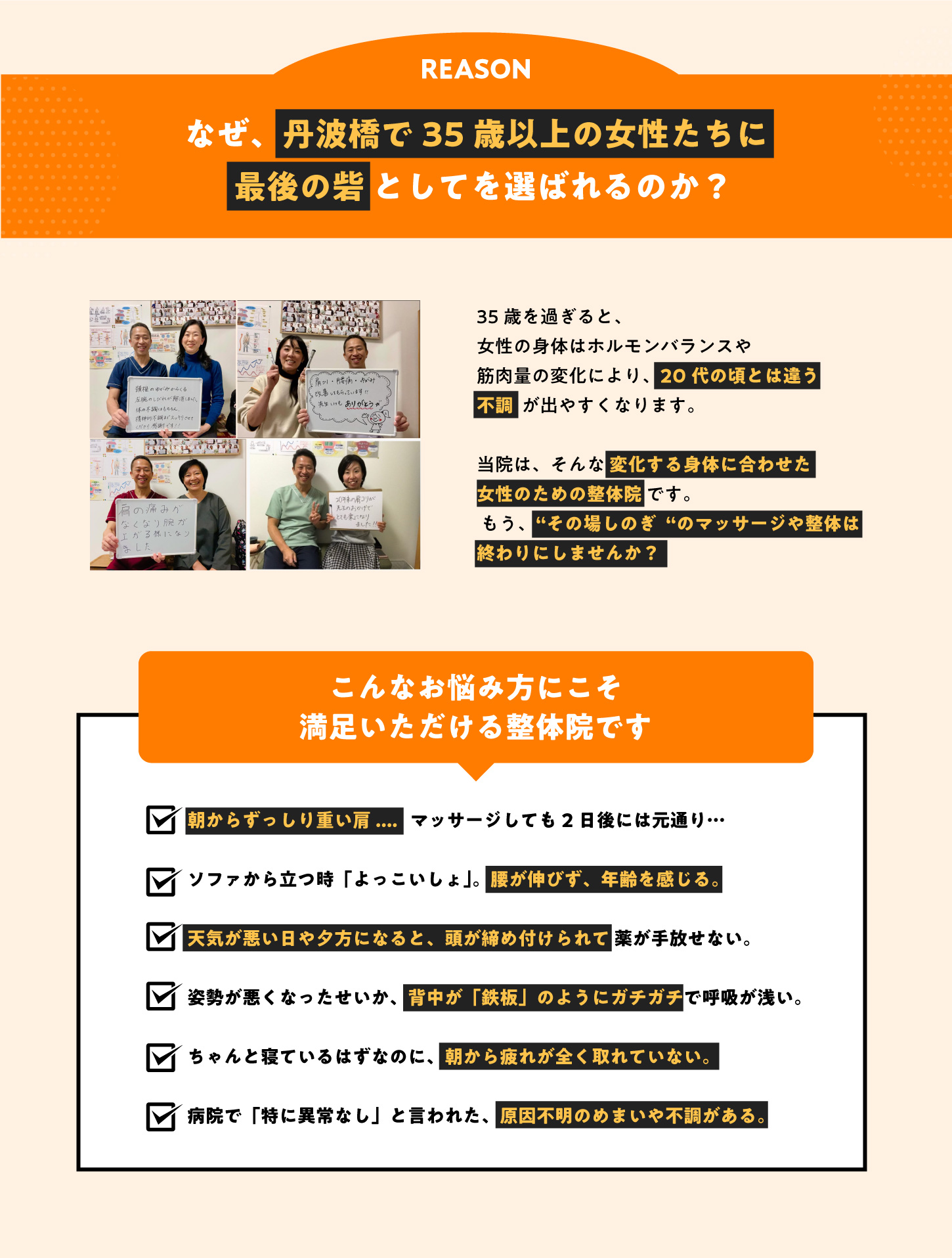 あなたのお悩みに真摯に向き合い、身体の変化を感じられると思います