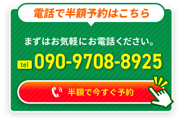 お電話でご予約の際は、必ずはじめに「ホームページを見ました」とお伝えください。